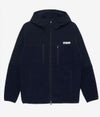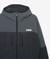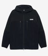 軽さと保温性を両立し、デイリーからアウトドアまで幅広く対応する万能フルジップフーディです。 本体には透湿性や撥水性を備えた高機能マイクロフリース素材を採用し、ソフトな質感と繊細に編み込まれたニット構造によるしっとり滑らかな表面感が特徴。さらにトーンオントーンのクリーンな配色で切り替えた部分には、マットな質感の撥水2WAYストレッチ素材を重ね、動きやすさとさりげないデザイン性をプラス。裏地にはストレッチ性と通気性に優れたドットエア素材を採用し、快適な着用環境をキープします。 立体的なカッティングとラグランスリーブにより肩周りの可動域が広く、アクティブな動きにもスムーズに対応。シャープな印象を与えるポケット配置に加え、袖口と裾には共地のバインダーを施し、冷気の侵入を防いで暖かさをしっかりキープします。軽やかな着心地ながら機能性も備え、季節の変わり目にも使いやすい仕上がりです。 どんなシーンにも柔軟に寄り添い、日常のスタイリングをアップデートしてくれる一着です。