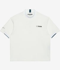 軽量ジャージ素材を使用した、バックプリントが特徴的なハーフモックネックシャツ。 本体には、マットな質感とスポンディッシュな風合いが魅力の軽量ジャージ素材を採用。さらりとした着心地で、アクティブなシーンでも快適に過ごせます。 衿元と袖口にはラインリブを配し、フィット感を高めつつスポーティーで洗練された印象を演出。さらに裾脇にはスリットを施し、腰まわりの動きやすさを確保しています。背中の大胆なプリントが存在感を放ち、一枚でスタイルが完成するデザインです。 機能性とファッション性を兼ね備えた万能トップス。ゴルフやトレーニングをはじめ、幅広いアクティブシーンで活躍する一着です。