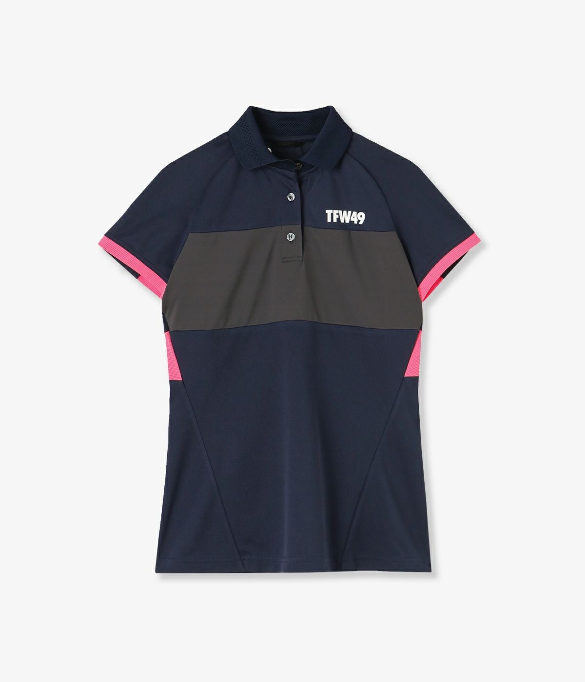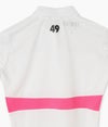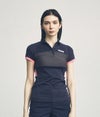 シンプルでスッキリとしたシルエットで、品のある印象のROFポロシャツ。女性を美しく見せるシャープなラインでありながら、抜群の伸縮性で快適な着心地。さらに速乾性・UVカットなどの機能を備えております。 メッシュ素材の適度な透け感がSSシーズンに最適な、清涼感のある印象を与えてくれます。また胸の切り替え部分は高いストレッチ性があるため、しっかりとプレーをサポートします。