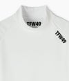 AQUA TWIST(アクアツイスト)というブランド名が付いているウレタンレス高伸縮ストレッチ素材を使用し、糸自身の高い伸縮性能と伸縮編構造との組み合わせにより 高い伸び率と縮み率を実現させたハイブリットモックネック。