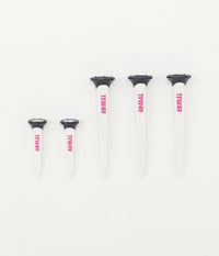 木製ティーと比べ折れにくく耐久性に優れ、ゴム素材の特殊なカップ形状によりボールを乗せやすく、ショット時の抵抗を減らし飛距離と安定した方向性を実現。先端部分の突起状の爪は、ショット後にティーの飛び出しを抑制し、ティー紛失防止に。