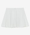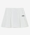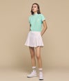 エレガントな動きを演出する、デザイン性と機能性を兼ね備えたスカート。 ハイテンションストレッチ素材に撥水加工を施し、適度なハリ感と反発力を実現。シワになりにくく、美しいシルエットをキープします。 前面はボックスプリーツ、背面はグラデーションデザインの細かいプリーツを採用。動くたびに軽やかに揺れるバックプリーツが、ゴルフシーンでも洗練された印象を演出。インナーパンツ付きで安心感があり、アクティブな動きにも対応。絶妙な丈感がスタイルアップを叶え、どんなトップスとも好相性です。 機能美を追求した一枚で、洗練された大人のスポーティスタイルを楽しんで。
