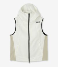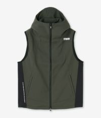 機能性とデザイン性を両立した、アクティブシーンに最適な高性能ベスト。 本体には、超細番手ポリエステル糸を使用したハイストレッチ素材を採用。軽量ながらハリ感があり、身体の動きに自然に追随します。さらに撥水・UVカット・防シワといったマルチ機能を備え、天候や環境を問わず快適に着用可能。裏地には中空糸による起毛メッシュ構造の〈OCTA®〉素材を使用し、優れた保温性と通気性を両立。寒暖差のある季節でも、衣服内を快適にキープします。 防寒性を高める衿高のフード仕様が特徴で、首まわりをしっかりカバー。アクティブな動きにも対応できる切り替えデザインがスタイリッシュな印象を与えます。ポケットは落下防止のファスナー仕様で、機能面も抜かりありません。 シンプルながらも洗練されたデザインで、ゴルフやトレーニングなどのアクティブシーンはもちろん、デイリーにも取り入れやすい万能アイテムです。