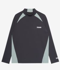 立体的なパターン設計で、動きやすく洗練された印象を演出するモックネック長袖シャツ。