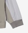 Vネックの抜け感がスポーティーかつクリーンな印象を演出。裏地には通気性に優れたメッシュ素材を使用し、ムレを防いでドライな着心地をキープ。袖口と裾はスピンドル仕様のダブル仕立てで、冷気の侵入を防ぎながらフィット感を調整可能です。