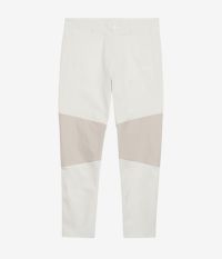 膝部分には、質感の異なるドライタッチのストレッチ素材を切り替えで配置。動きやすさを高めるだけでなく、視覚的にもシャープな印象を与えます。さらに、後ろウエストのループやベルクロ仕様のバックポケットなど、ゴルフシーンで重宝する機能も搭載。細部まで計算された設計が、プレー時の利便性とデザイン性を両立させています。