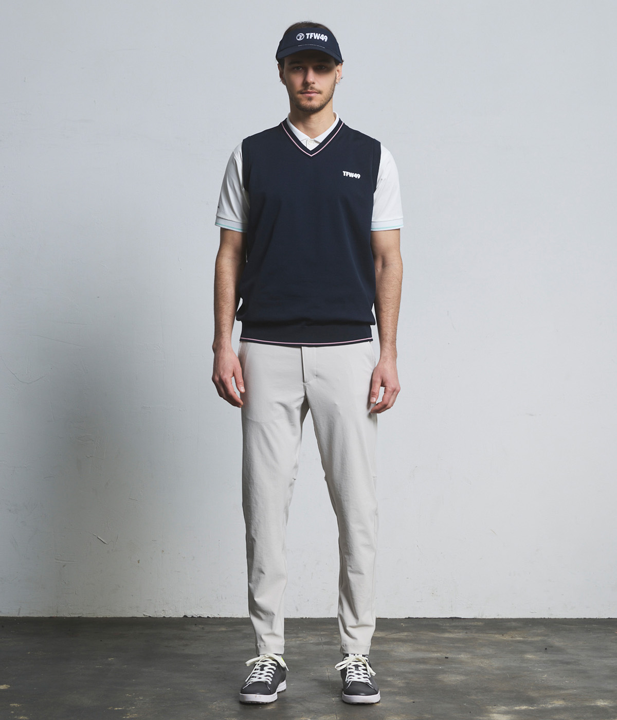 首元のVネックリブと裾リブに配色ラインを施し、さりげないアクセントをプラス。 春先から初夏まで快適に着用でき、ゴルフシーンからカジュアルまで幅広く活躍する、TFW49らしい機能性を備えた一着です。 高品質ポリエステル100%を使用。さらっとしたドライなタッチが特徴で、優れたストレッチ性により動きに合わせてしなやかに伸縮します。シワになりにくくイージーケアで扱いやすいのも魅力。