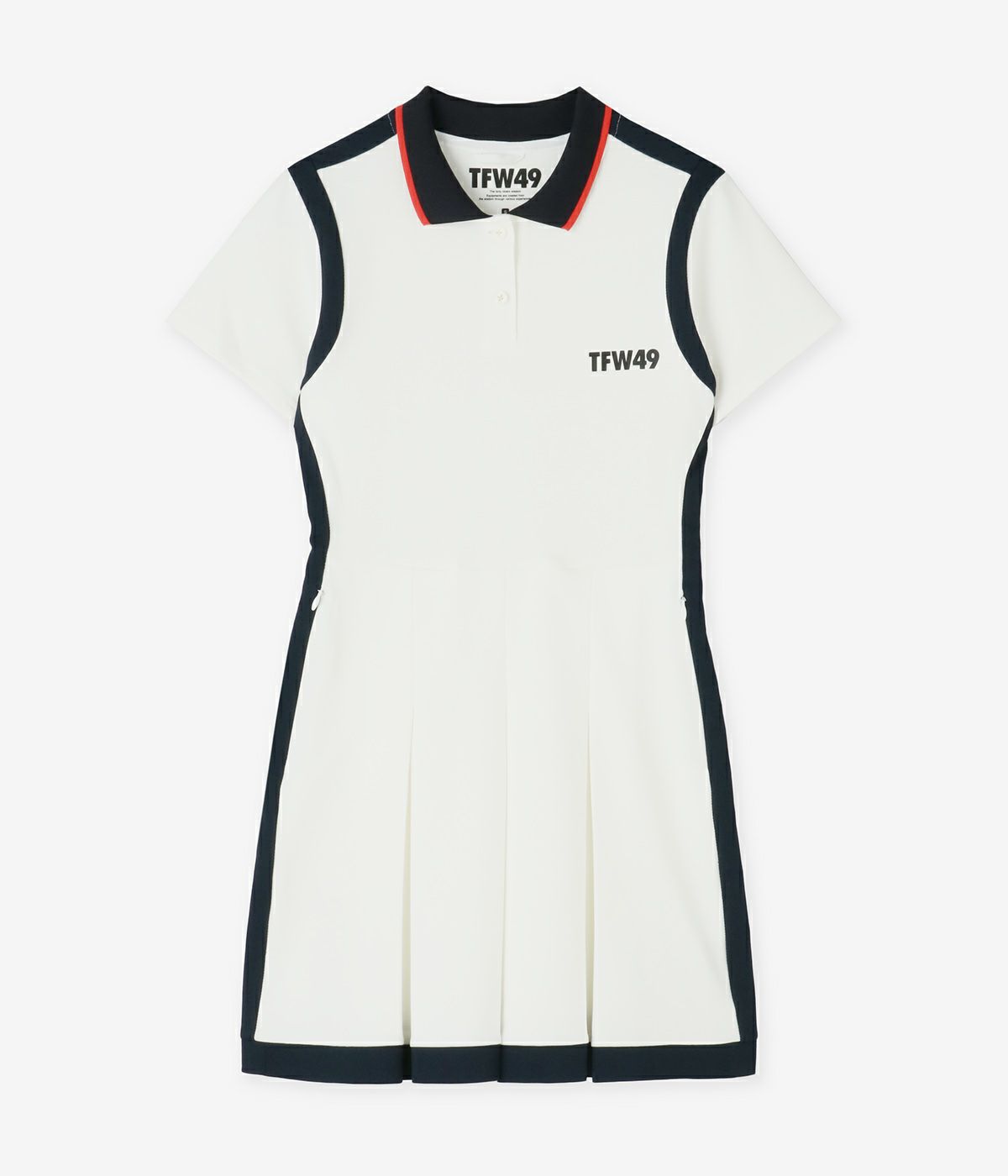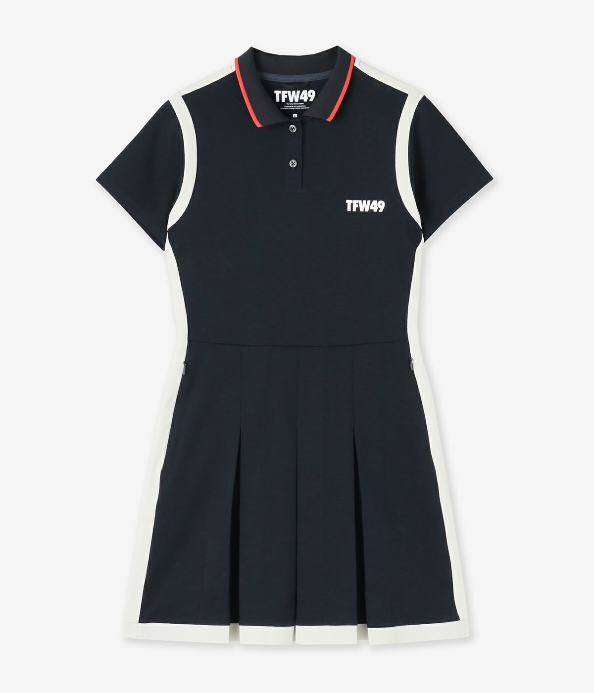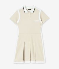 洗練されたデザインと機能性を兼ね備えた、ゴルフシーンに映えるプリーツワンピース。 身生地には、滑らかな手触りとしっかりとしたハリ感のあるストレッチ素材を採用。別布には、UVカット効果を備えた通気性の良い吸水速乾素材を使用し、長時間のプレーでも快適な着心地をキープ。 ボックスプリーツがクラシックな印象を演出しながらも、スポーティな衿のラインがアクセントに。縁取られたようなデザインが目を引き、華やかさと存在感をプラス。 機能性とスタイルを兼ね備えた一着で、プレー中も快適に、美しくゴルフを楽しめる。