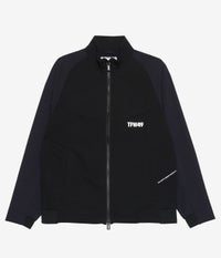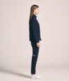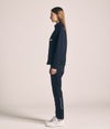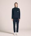 前後身頃や袖下の切り替え部分には、ドライタッチのストレッチ素材を重ねることで耐久性を向上。異素材の質感コントラストが上品でスポーティーな印象を生み出します。袖口と裾はリブ仕様で風の侵入を防ぎ、保温性とフィット感を高める設計に。