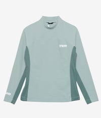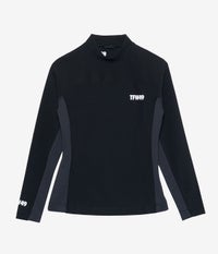 女性らしいラインと高機能素材が融合した、快適パフォーマンストップス。 本体には、軽く滑らかなタッチと伸びやかなストレッチ性が特徴のトリコットジャージ素材を使用。特殊ナイロン糸「Meryl®」を採用し、UVカット・接触冷感・ストレッチ性に優れ、長時間の着用でも快適なコンディションをキープします。さらに袖や身頃のパネル切替え部分には、吸水速乾性と通気性を兼ね備えたポリエステル製ピンメッシュ素材を使用し、快適性とデザイン性を両立させています。 身体の動きにしなやかにフィットする立体的なカッティングで、アクティブな動作をサポート。曲線を意識した切り替えが女性らしいシルエットを引き立て、トーンオントーンの配色と異素材の質感コントラストが、クリーンで洗練された印象を与えます。 ゴルフやランニング、トレーニング、アウトドアなど、あらゆるアクティブシーンで快適さと美しさを両立。機能とデザインを兼ね備えた、頼れるモックネックトップスです。